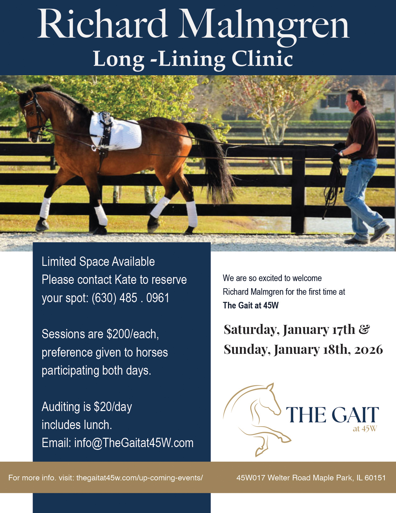 The Gait strives to bring you valuable content that helps you improve your overall knowledge, riding, and horsemanship skills.  Below is a listing of our upcoming horse clinics and events. If you have an event that you would like us to host, please contact us.